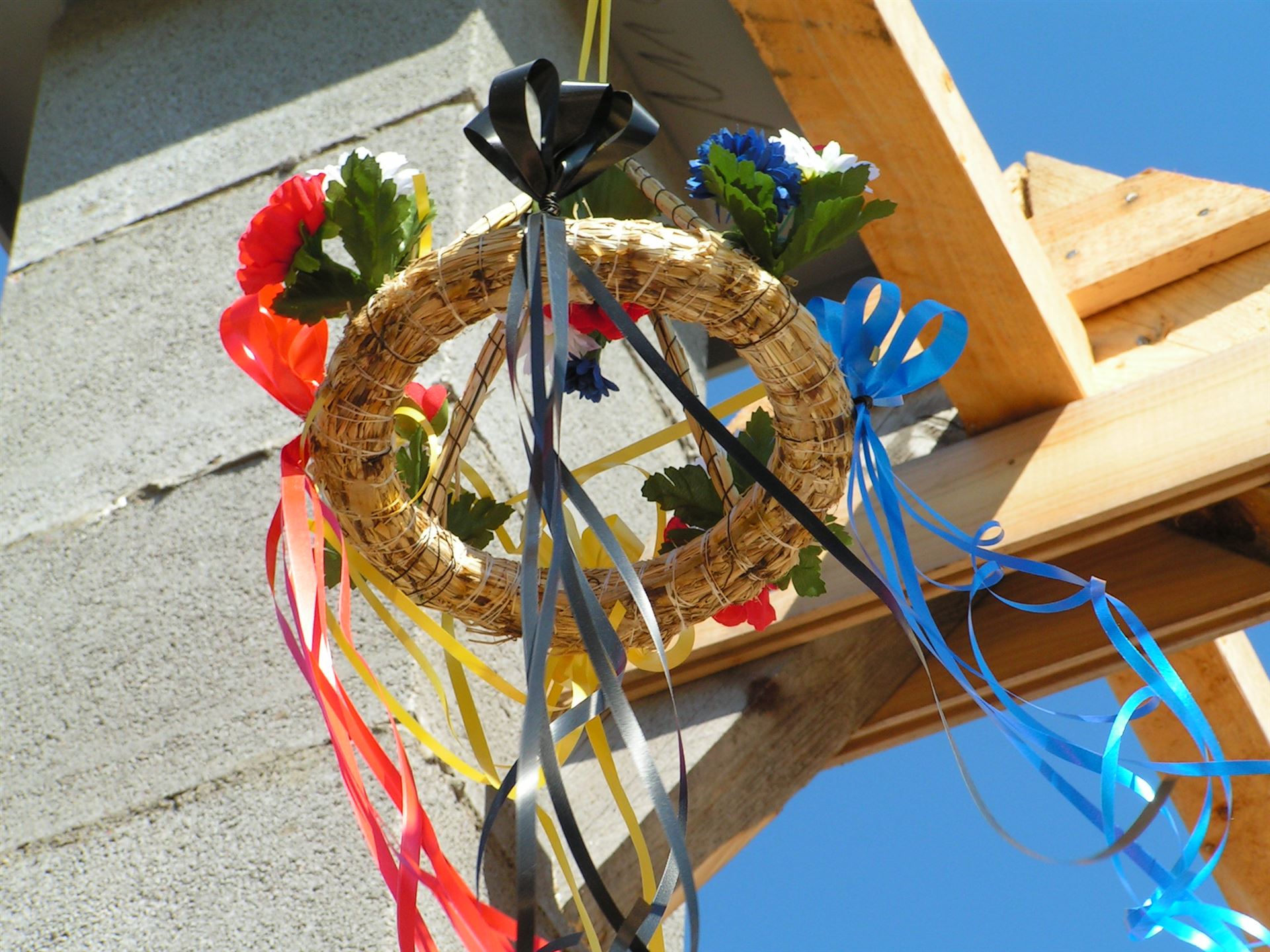 Da diese traditionell im neu gebautem Hause verbleiben, fertigen wir diese auf Strohunterlage verziert mit Kunstblumen und Schleifenbändern. Selbstverständlich sind auch andere Materialien möglich. Sprechen Sie uns einfach an bzw. senden Sie uns eine Mail.